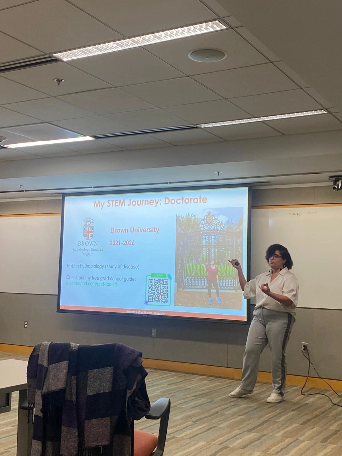 This month, I had the chance to present my thesis research and personal journey in science as part of Stories with Scientists—a TED-style talk series hosted by Brown’s Office of Graduate Studies for undergraduates in the Leadership Alliance summer program. The goal was to give students a high-level look at the diverse kinds of research happening on campus while sharing how we got here. It was an honor to speak to such a motivated group of future scientists and to be part of a program that values mentorship and storytelling just as much as data, especially as a Leadership Alliance alumni myself!