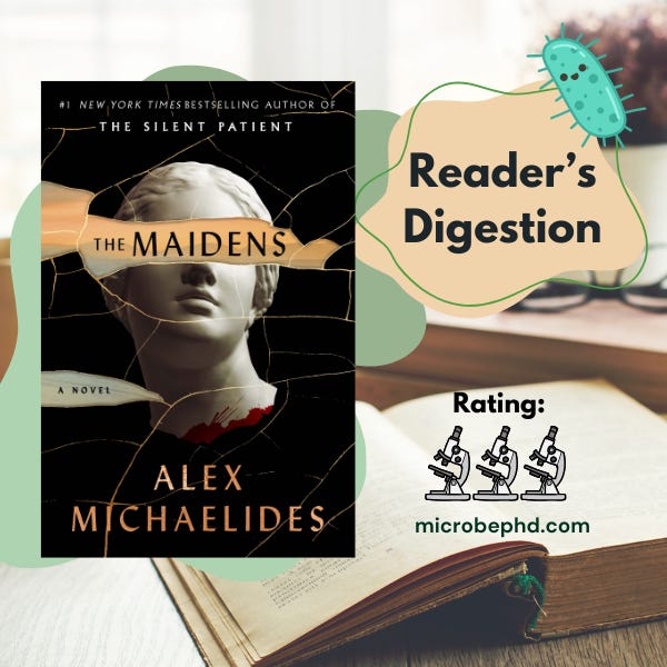That said, The Maidens isn’t a total miss. It’s a quick read with an engaging premise and will likely scratch the true crime itch for those looking for a dark, suspenseful escape. But if you're hoping for a twist that sticks the landing, you might walk away a little disappointed.